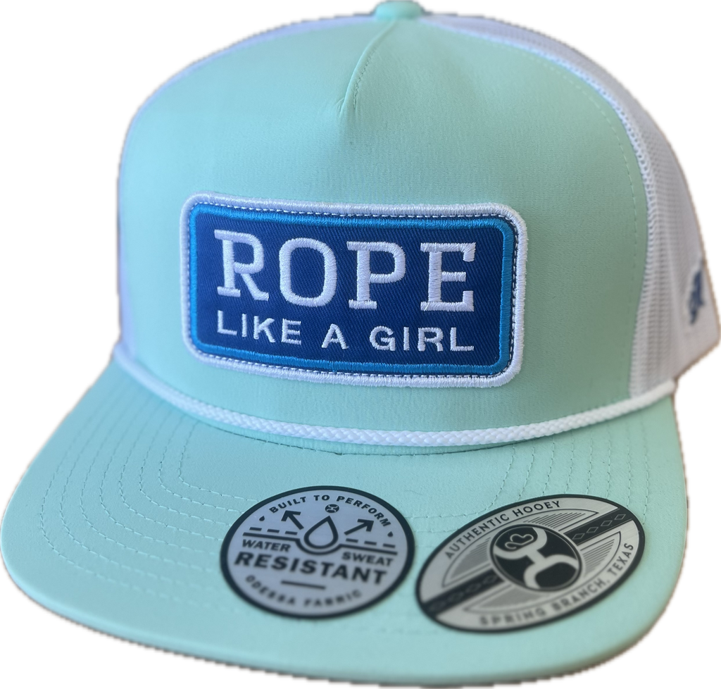 "Rope Like A Girl" Hat Mint/White w/Blue & Turquoise Patch